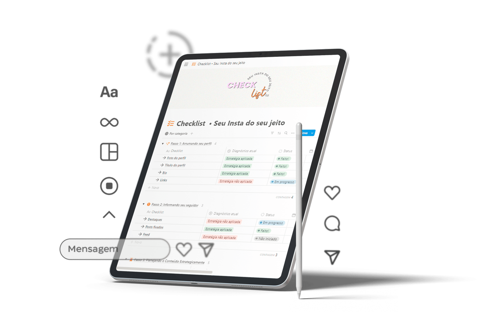 O checklist é 100% prático você vai executar tarefas para deixar seu insta mais profissional, atraente e eficiente pra transformar seguidores em clientes.