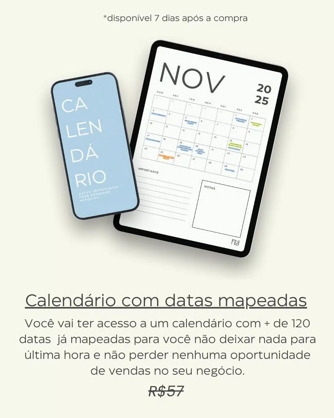 Calendário com mais de 120 datas de 2025 já mapeadas para você não perder nenhuma oportunidade