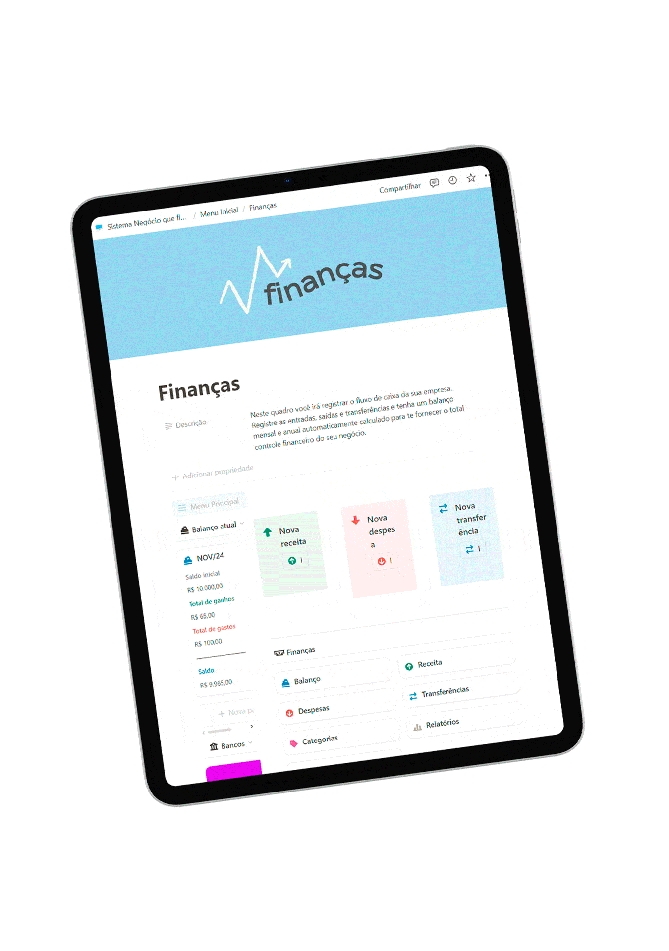 Sistema completo no notion pra fazer a gestão de todas as áreas do seu negócio num só lugar